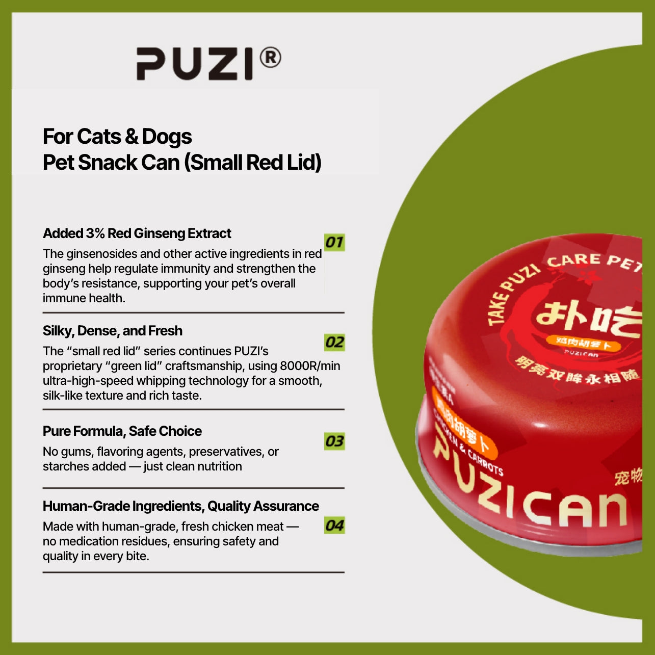 PUZI® /pu-chi/ is an Asian pet food brand dedicated to creating natural, science-based meals for cats and dogs. Each recipe combines real meat, functional ingredients, and nutrient-rich broths ensuring a perfect balance of taste and wellness. Trusted by pet owners across Asia, PUZI® promotes better digestion, stronger immunity, and happier, healthier pets.