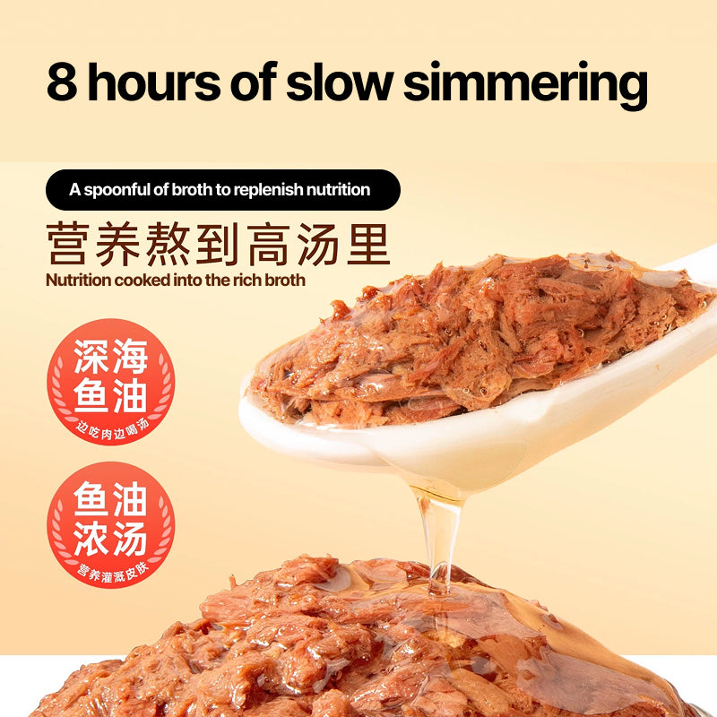 • Feeding Guide: Serve directly after opening; always provide fresh water; recommended 1 can/day for a ~3kg adult cat; can be mixed with dry food; adjust based on age, weight, activity level, and environment